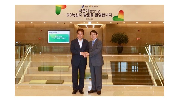백군기 용인시장, 기흥구 GC녹십자 본사 격려 방문