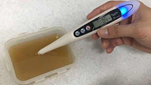 용인시는 어린이들이 싱겁게 먹는 습관을 키울 수 있도록 관내 어린이급식소 200곳에 염도계를 지원키로 하고 10일부터 신청을 받는다. 국민건강영양조사 결과 영유아들의 나트륨 섭취량이 하루 1932mg으로 섭취충분량 900mg 보다 2배나 높아 도움이 필요하다는 판단에서다. ▲ 어린이집 급식 국 염도 측정 모습 지…