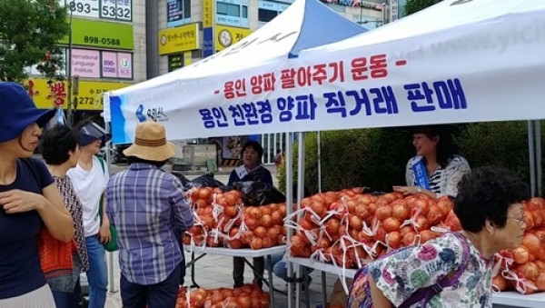 용인시는 12일 생산량 증가로 가격이 하락한 양파 생산 농가의 어려움을 덜어주기 위해 수지구 여성회관 앞 광장에서 양파직거래 판매 장터를 열었다고 밝혔다. ▲ 용인 친환경 양파 직거래 판매 행사 한국…